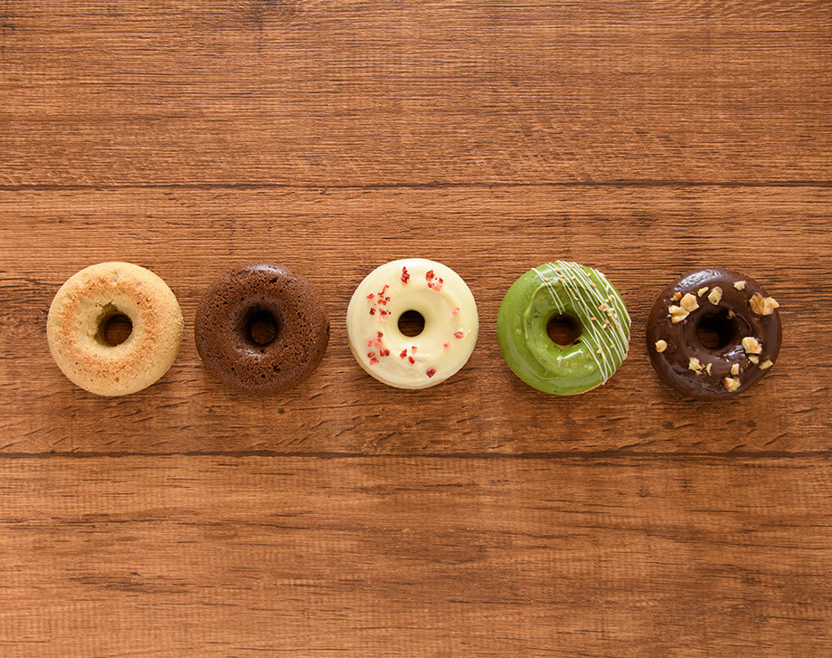 米粉の焼き5種ドーナツ アソート(プレーン、ココア、苺、抹茶×ごま、チョコ×くるみ)